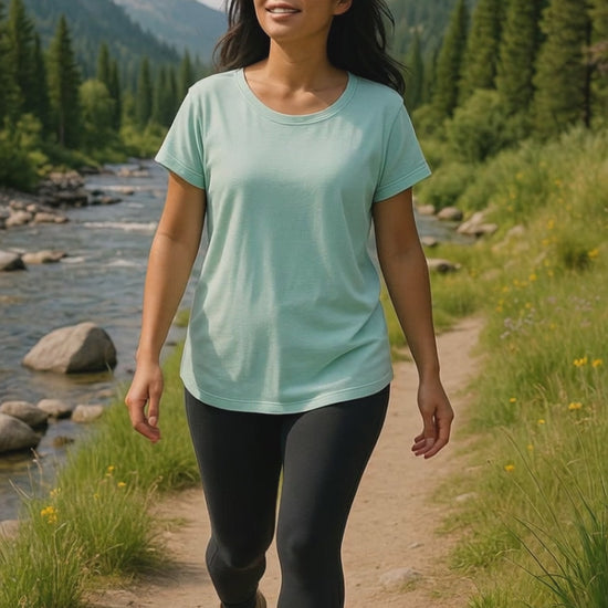 This Athleta tee offers effortless comfort with a calm, nature-inspired aesthetic. Crafted from a lightweight, breathable performance fabric, the relaxed silhouette allows for easy movement while maintaining a clean, flattering drape. The classic crew neckline and short sleeves keep the design timeless and versatile, making it ideal for layering or wearing on its own. Finished in a tranquil pastel teal shade reminiscent of alpine lakes and coastal horizons, this piece pairs beautifully with everything from hiking layers to casual denim, bringing quiet ease to both outdoor adventures and everyday moments.