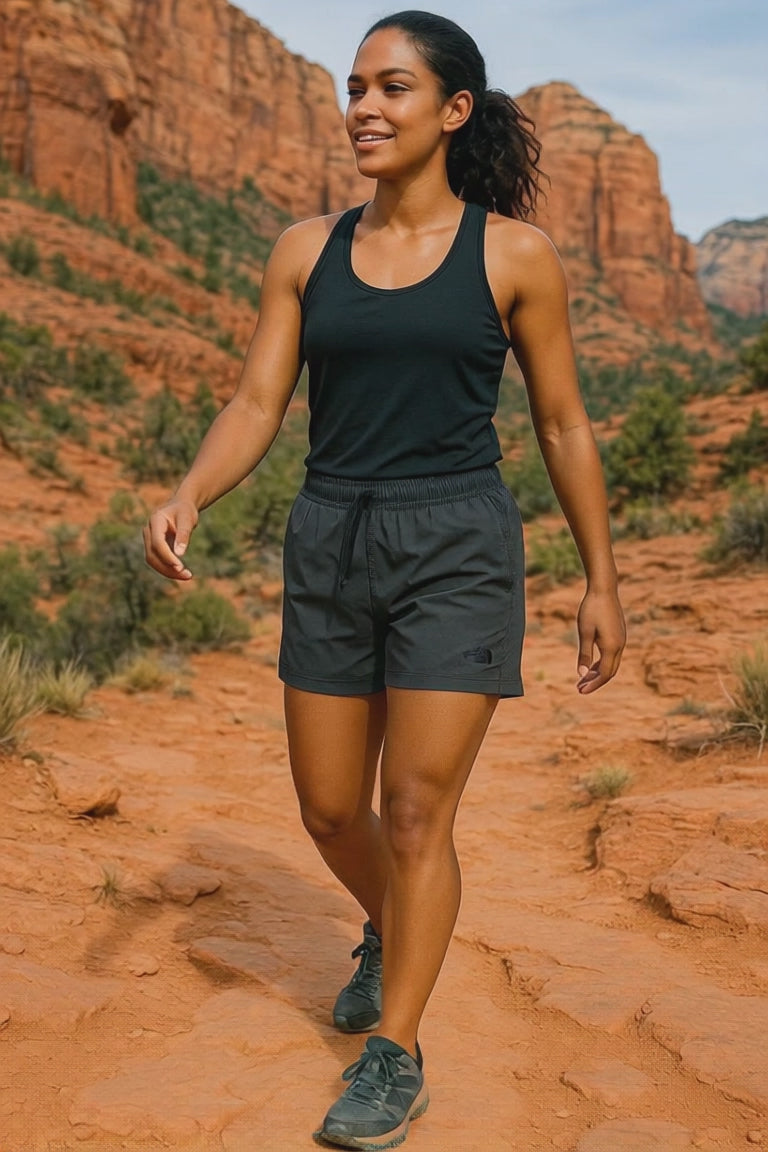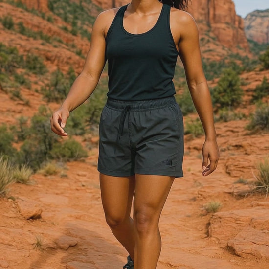 Some pieces are simply built to keep up with you. These The North Face athletic shorts combine comfort, practicality, and effortless outdoor style. The relaxed silhouette allows easy movement while maintaining a clean, flattering shape, and the lightweight performance fabric feels breathable and airy throughout the day. A rich dark green tone adds a natural, versatile color that pairs easily with activewear or casual everyday layers. Designed with three functional pockets and an adjustable drawstring waist, these shorts make it easy to carry essentials while maintaining a comfortable, secure fit whether you're hiking, running errands, or enjoying a relaxed summer day.